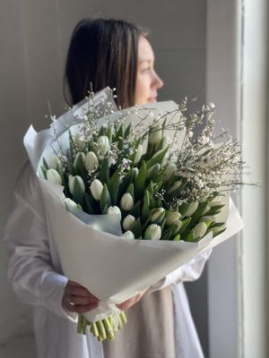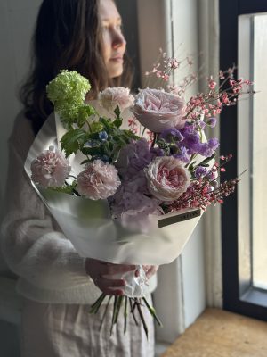 До момента создания композиции букет согласовывается с заказчиком. Флорист отправит фотографию и при необходимости исправит какие-либо детали.