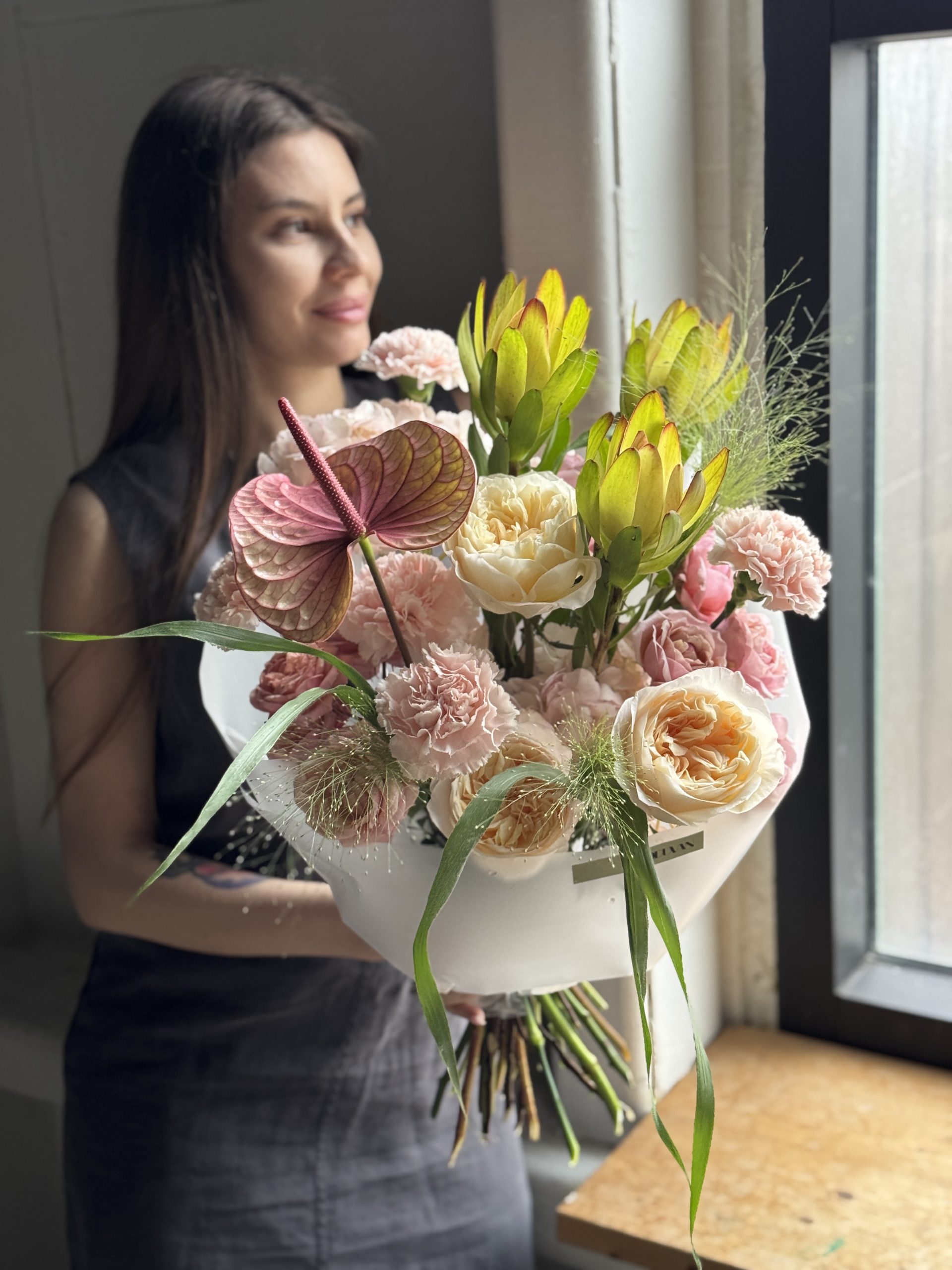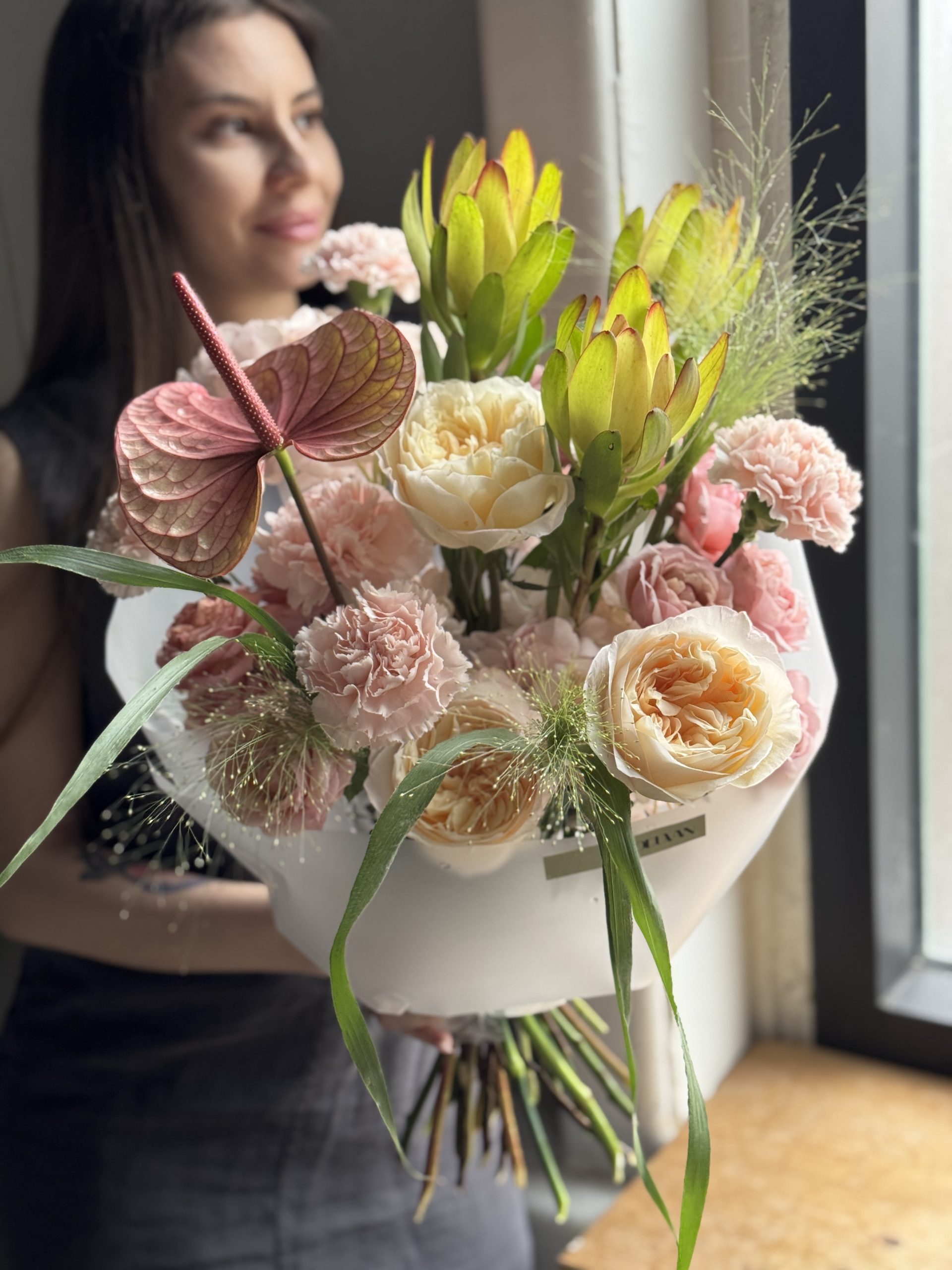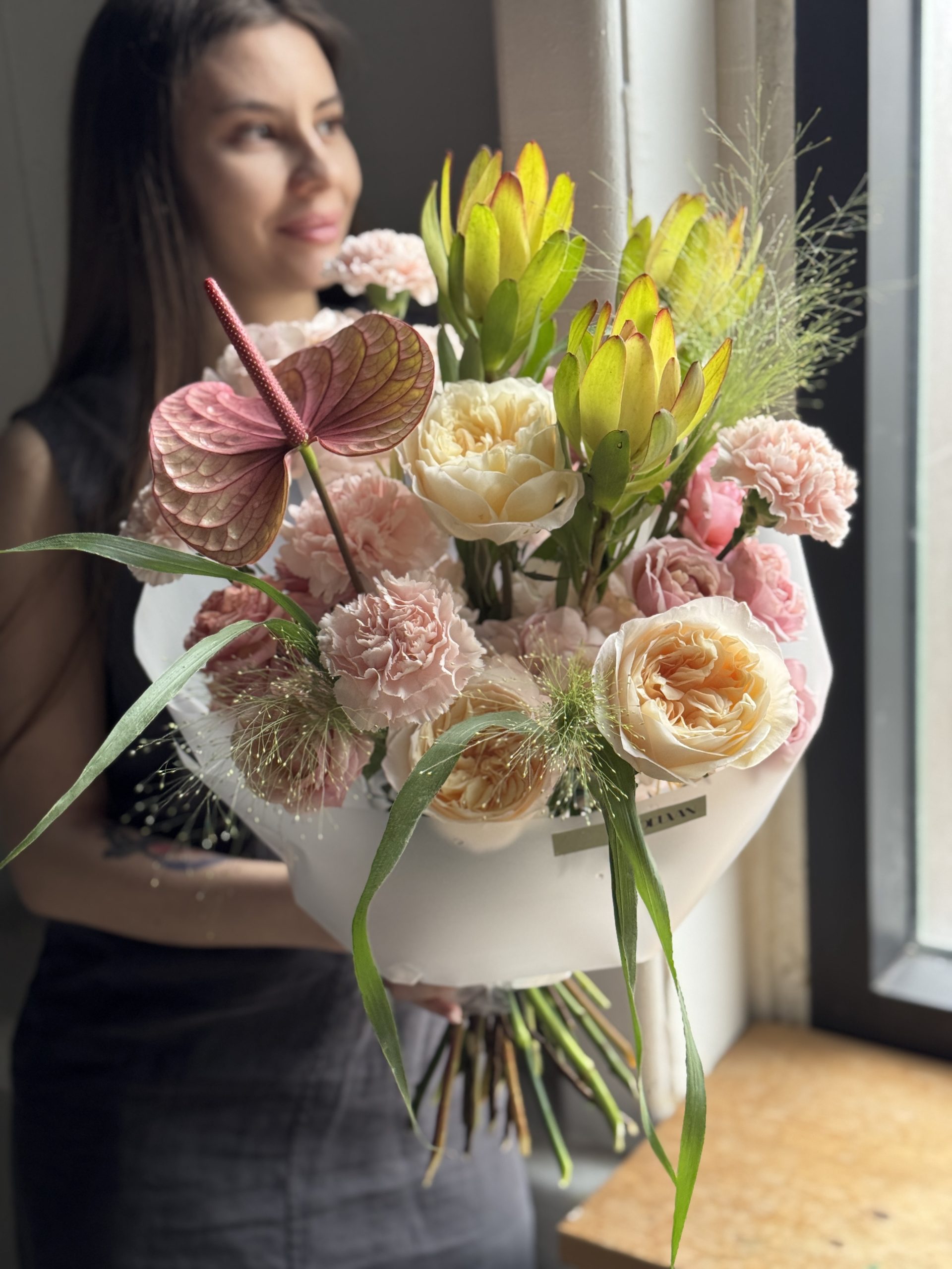 Обязательно направим Вам фото готового букета для согласования и только после одобрения передадим на доставку.