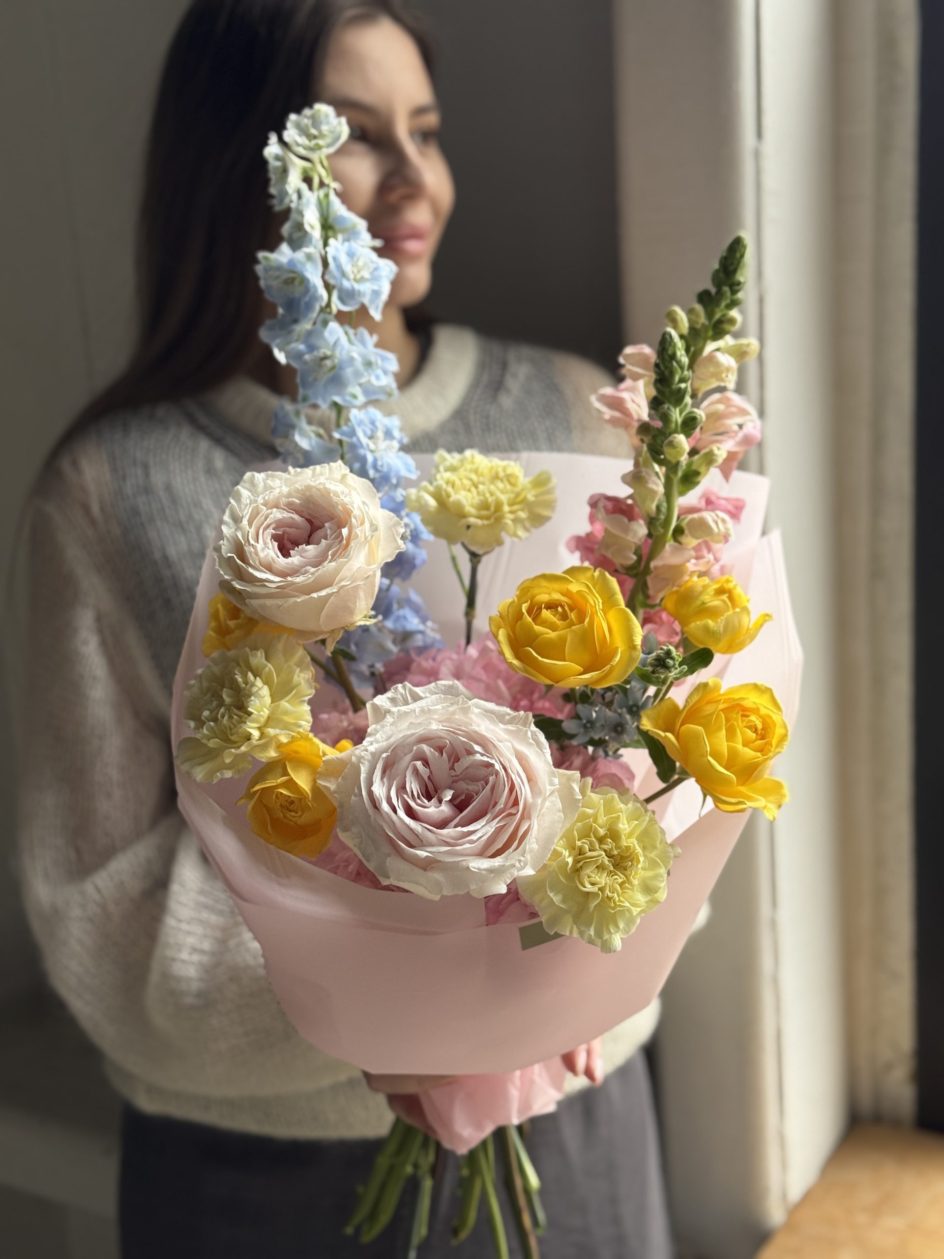 Комплектация: Отправим на доставку в стильной коробке с открыткой, аквапаком, инструкцией по уходу и средством для продления жизни.