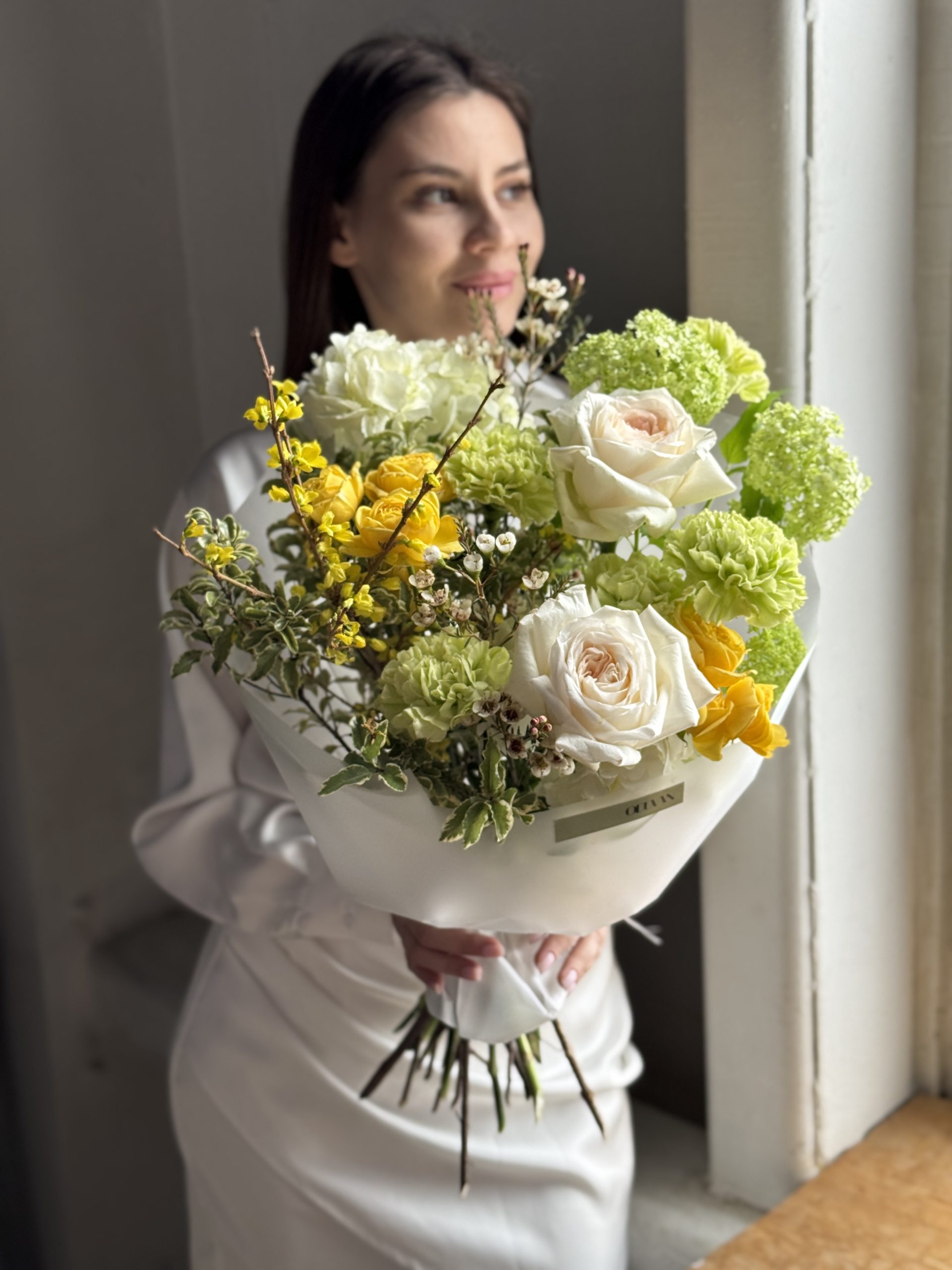 Соответствие букета: Ежедневно мы отбираем для Вас цветы со всех уголков света, и они могут отличаться.Мы не можем гарантировать 100% копию букета, однако гарантируем сохранить основной состав и стилистику Вашего букета.