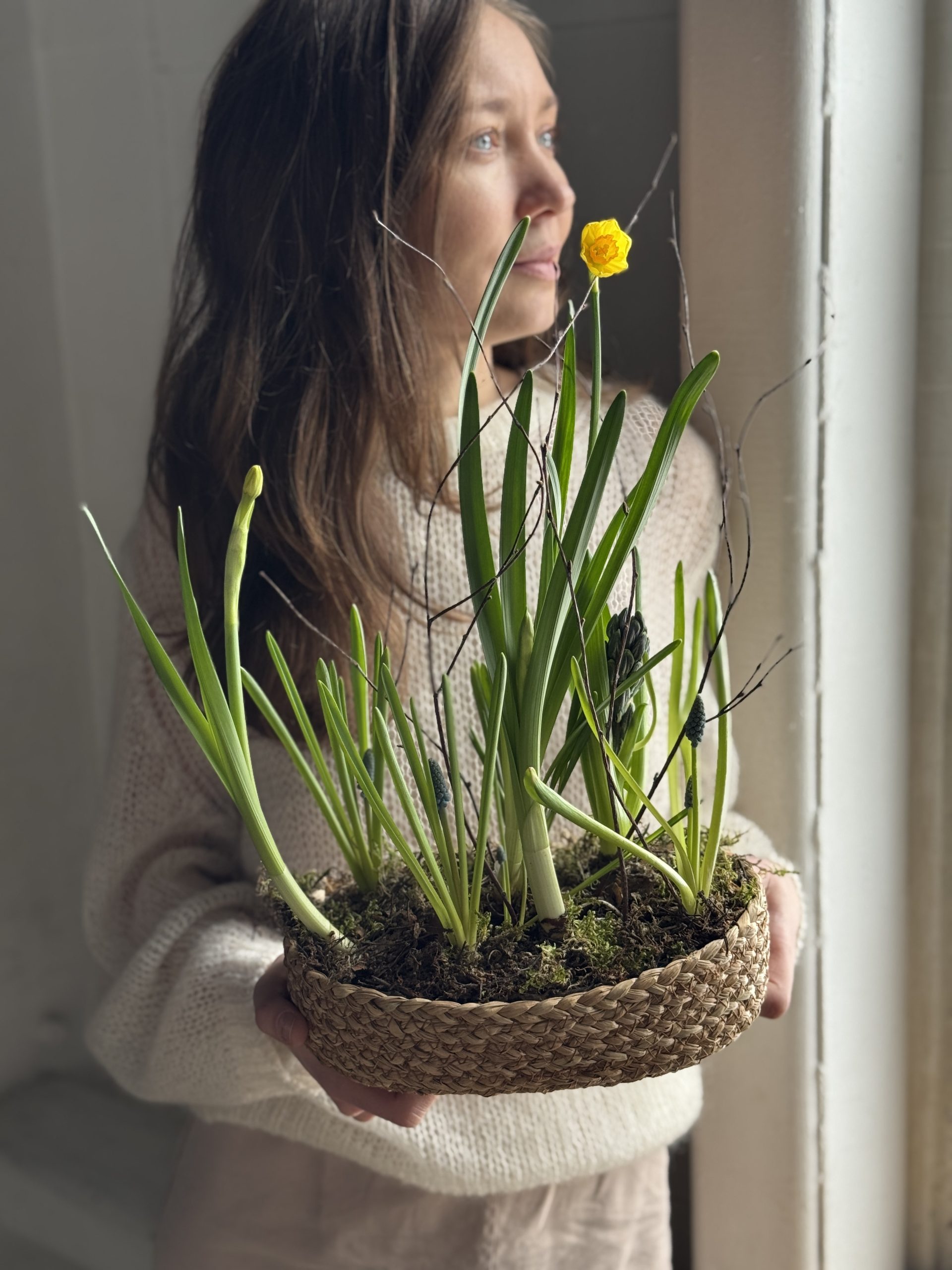 Уход: Умеренный полив по мере высыхания грунта. Рекомендуется убрать композицию от прямых солнечных лучей и отопительных приборов. Луковицы первоцветов распускаются в течение 3-7 дней.