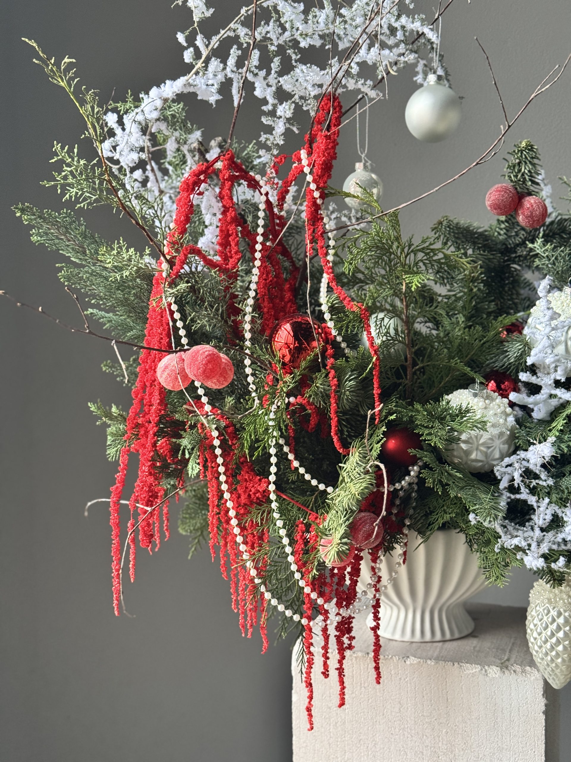 Хвоя сохраняет свой волшебный аромат и натуральный цвет до 4х недель, а далее веточки ссыхаются, но не осыпаются.