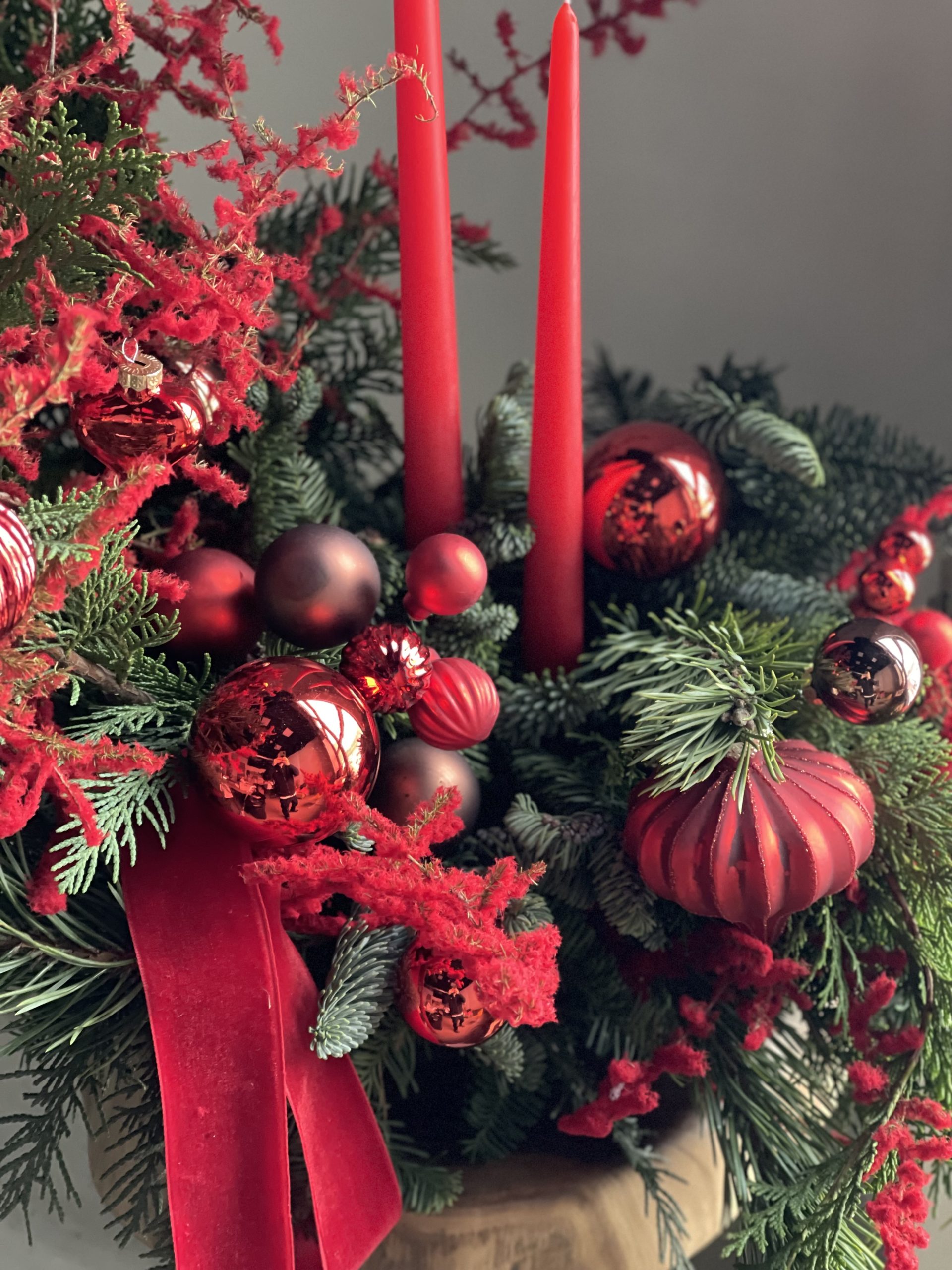 Для поддержания свежего вида хвои подливайте воду в центр композиции раз в 1-2 дня по мере высыхания губки, а также умеренно опрыскивайте пульверизатором.