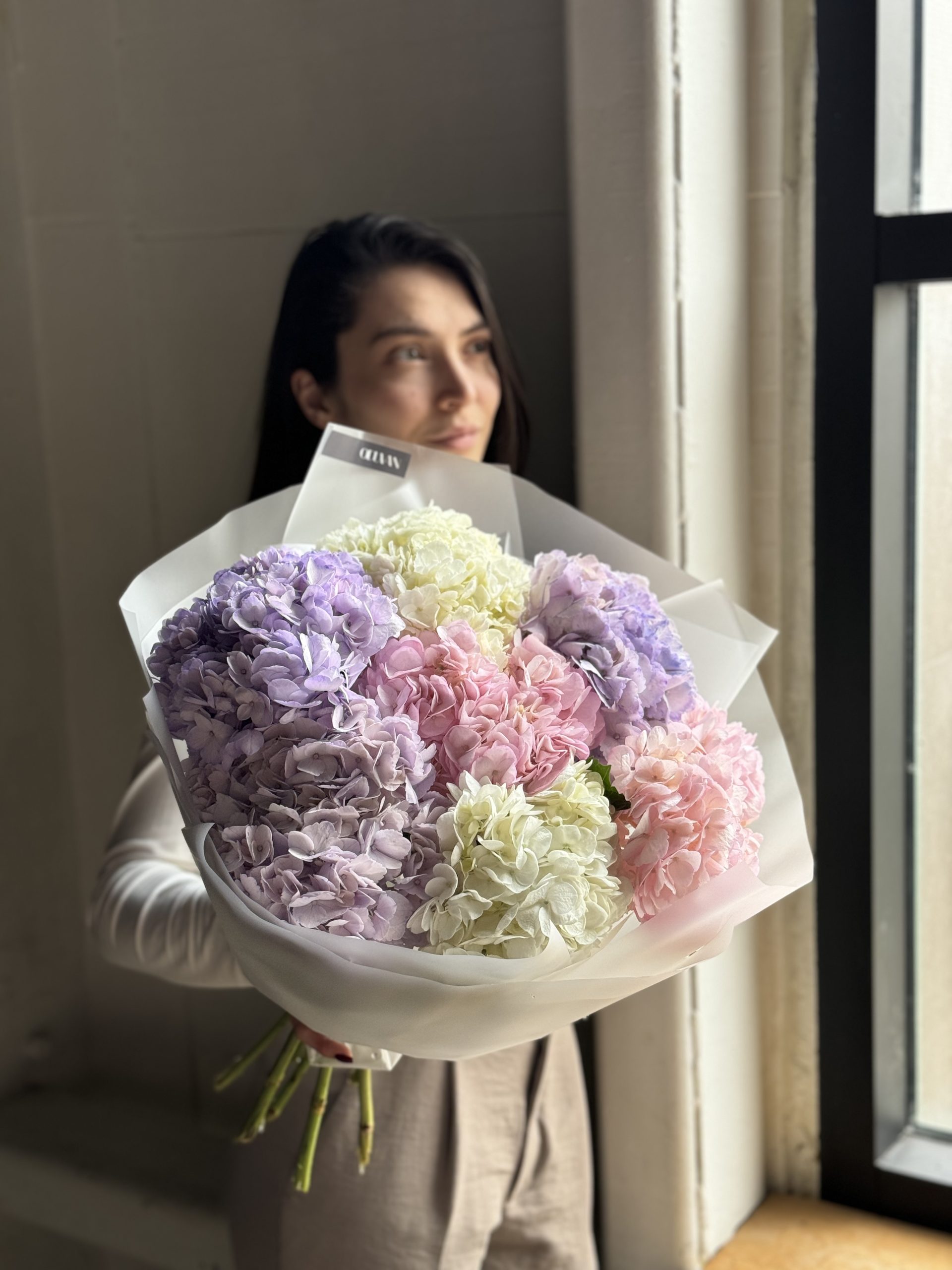 Описание: Монобукет из 7-ми гортензий.