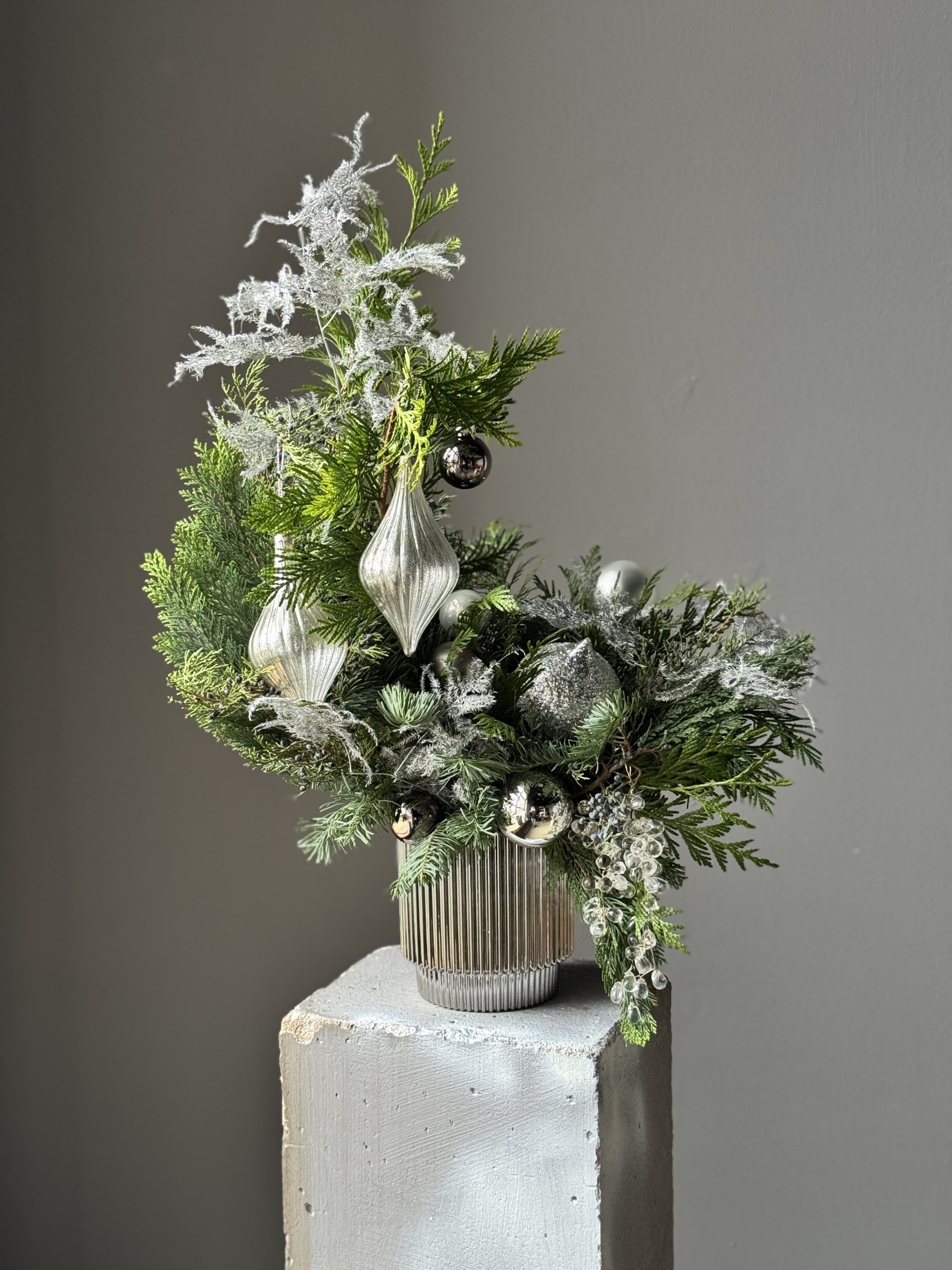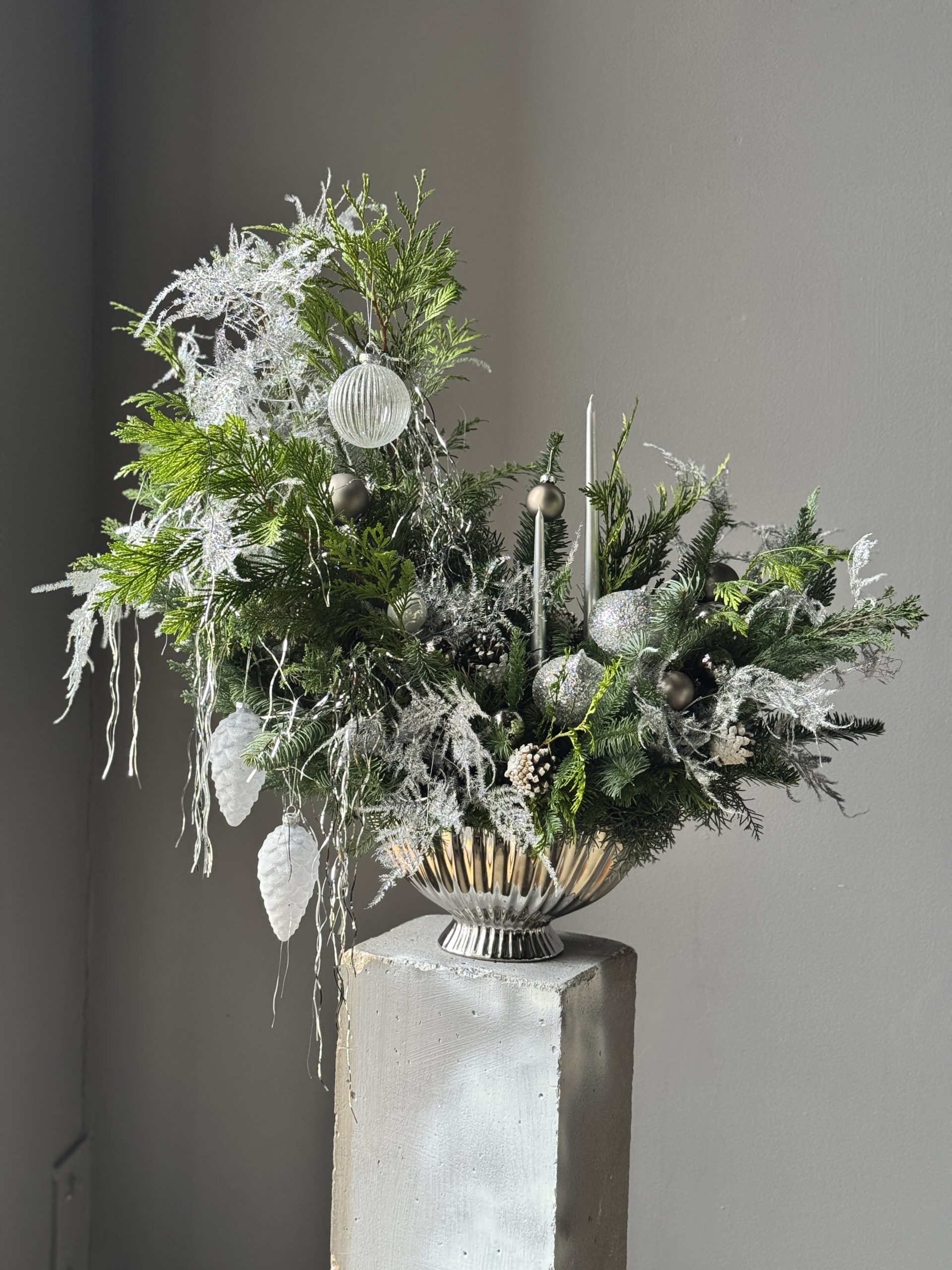 Хвоя сохраняет свой волшебный аромат и натуральный цвет до 4х недель, а далее веточки ссыхаются, но не осыпаются.