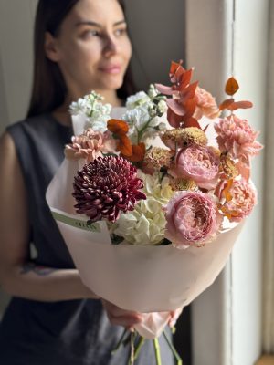 • согласование каждого букета на этапе формирования заказа, а также после сборки. До того как композиция будет передана в службу доставки, флорист вышлет фотографию букета заказчику и убедится, что все выполнено верно.