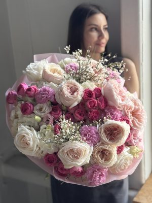 Купить букет цветов с доставкой можно не только находясь рядом с получателем. Оформление доставки цветов возможно в удаленном формате. Это удобно для тех, кто находится в отпуске, командировке или не имеет возможности лично отправиться в цветочную мастерскую.